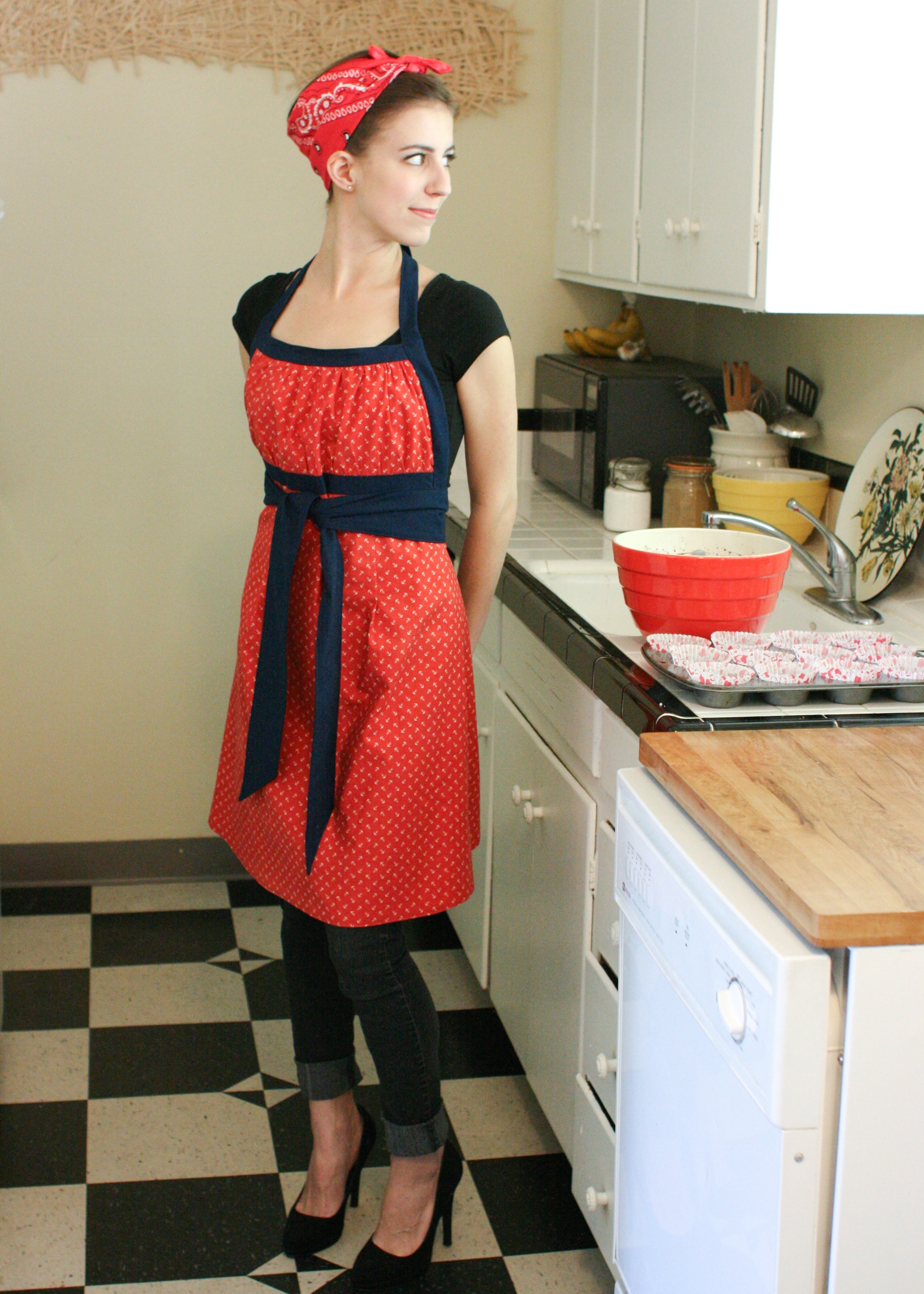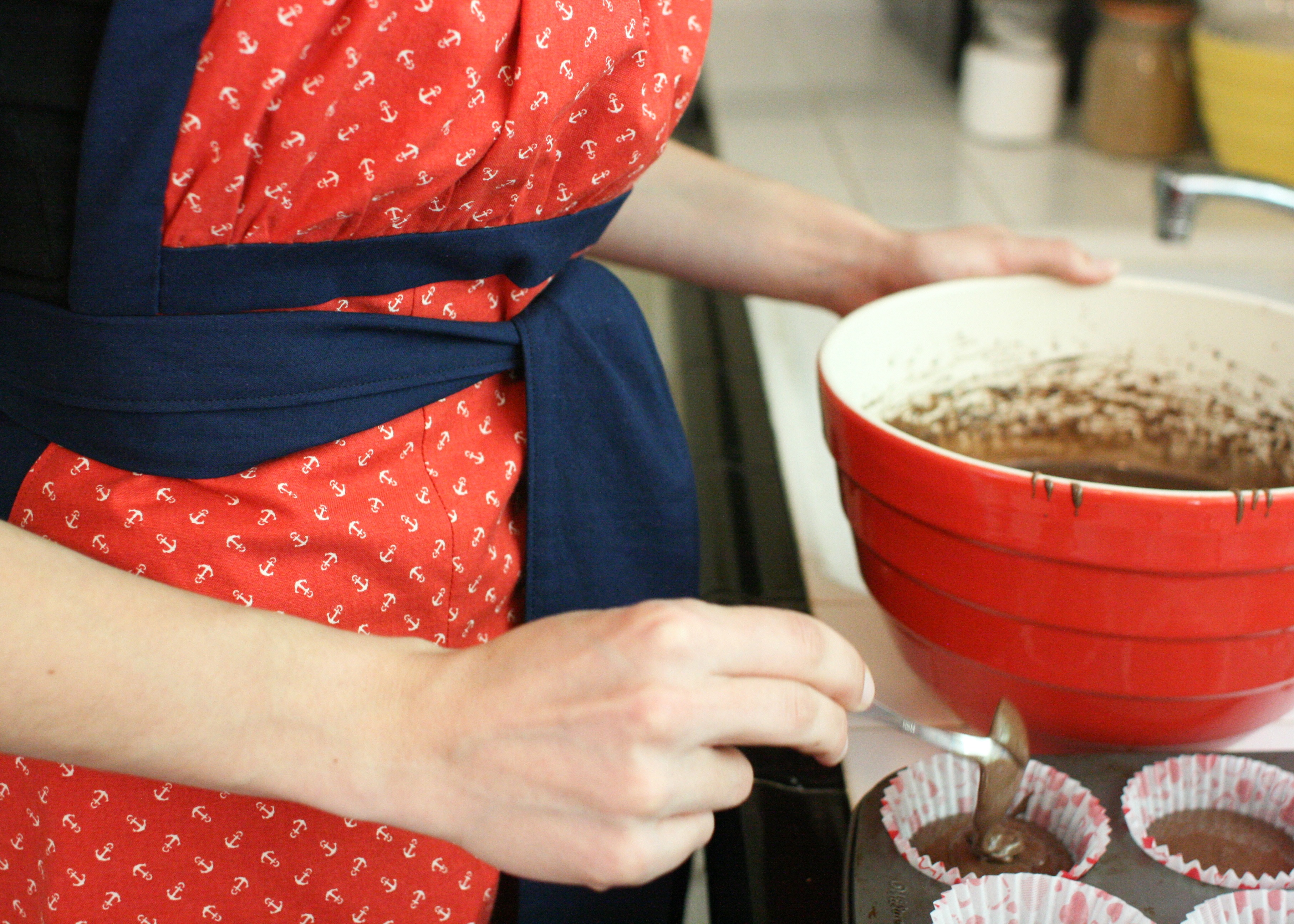 laura loves to bake, and whips up wonderfully fancy cupcakes (root beer float, cinnamon toast crunch, salted caramel…my mouth waters just thinking about them).  she really did need a pretty apron of her very own!