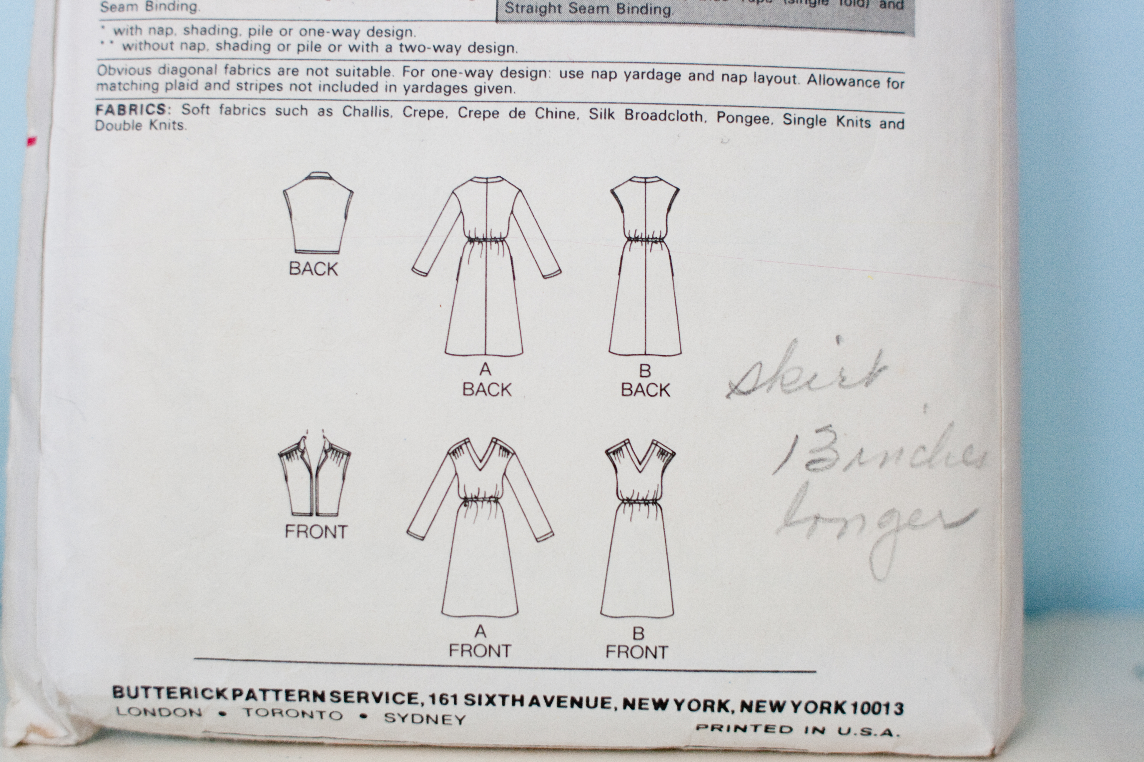 this cracks me up too. the original owner scrawled “skirt 13 inches longer.” weeellll…i think i cut the skirt about 13 inches shorter than the pattern! i cut it in a bit of a U shape so the sides have a subtle curved bottom like the hem of a men’s shirt.