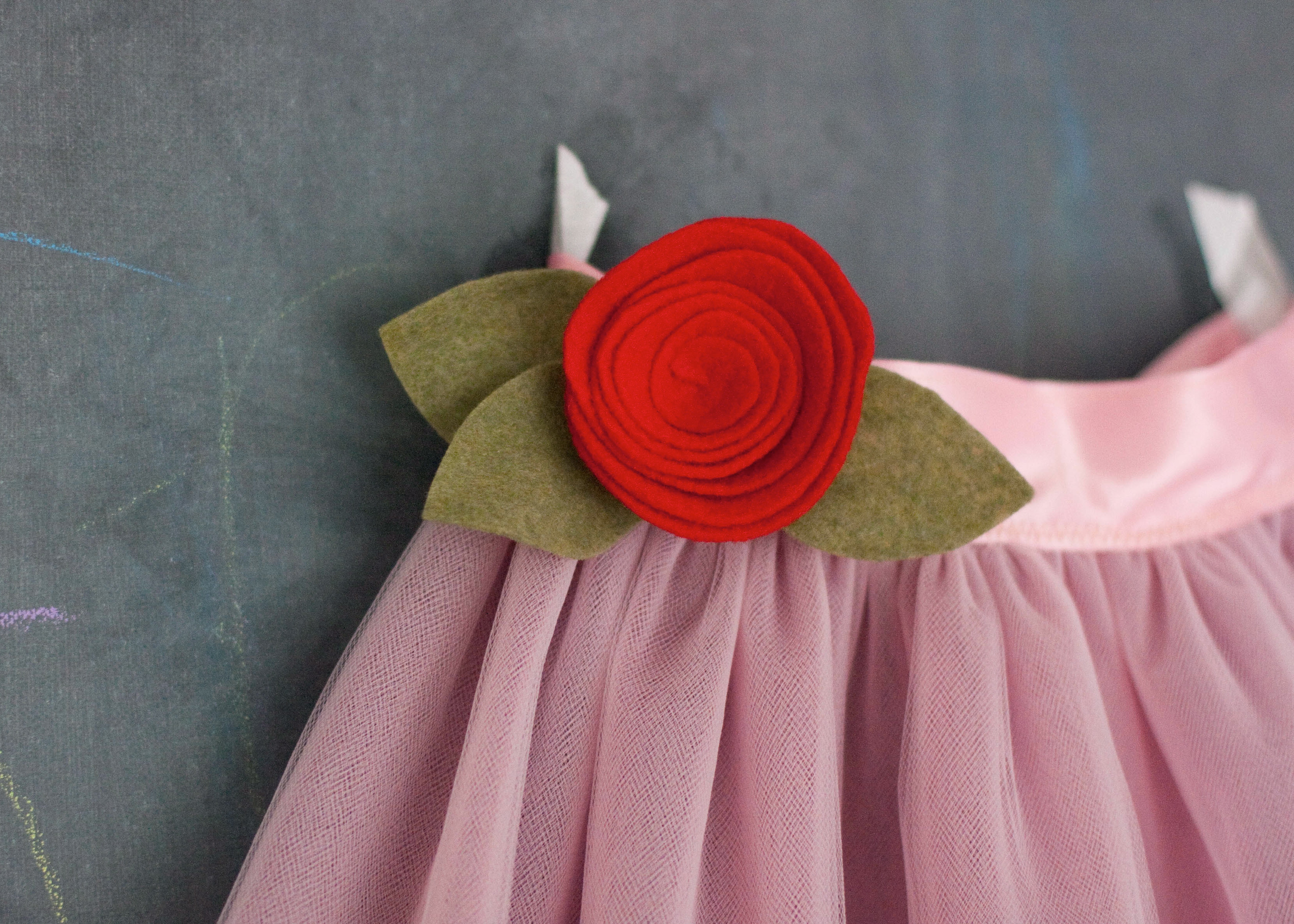 i also made a felt rose to clip to the waistband, just like angelina has.