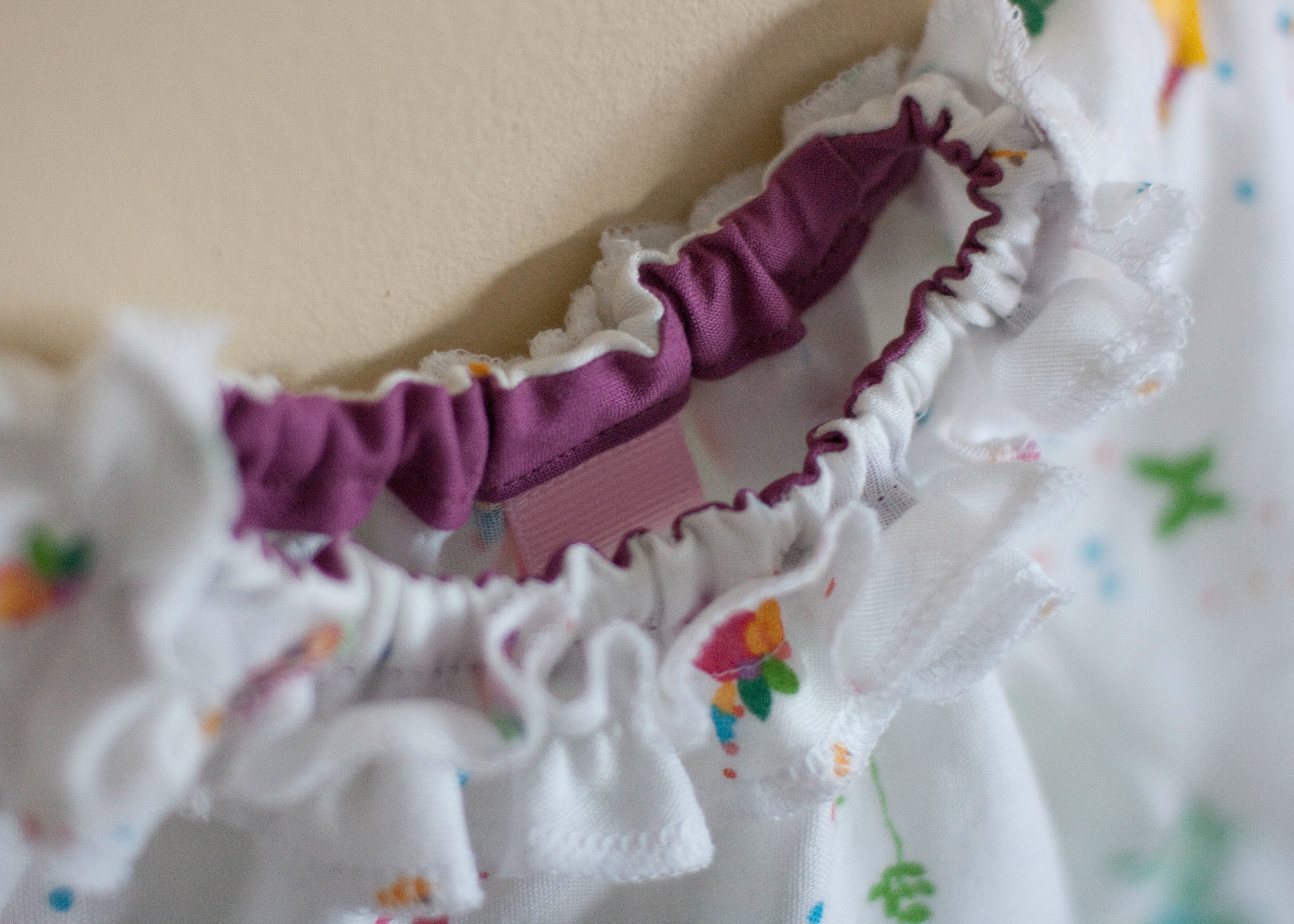 my cousin therese, who didn’t find out what she was having ahead of time (prompting me to make this gender neutral baby shower gift), gave birth to a beautiful baby girl a couple weeks ago.  baby E is a sweet little thing, and so teensy!  since they didn’t know they were having a girl, i wanted to make a girly dress, even though dresses aren’t super practical for tiny babies.  WHATEVER!  i got some ruffle butt leggings to go under it.  that makes it practical, right?  i think it’ll fit her next spring.