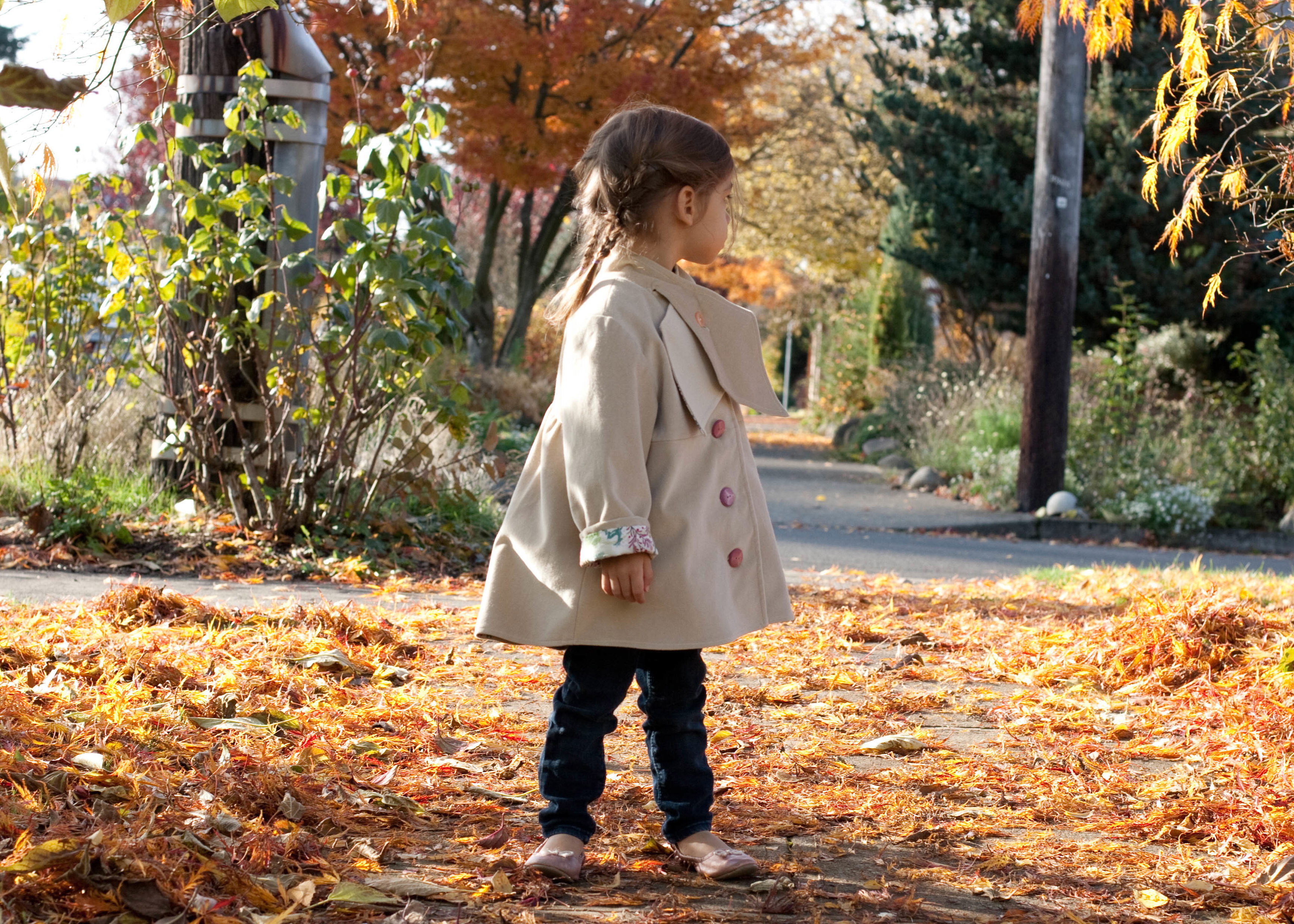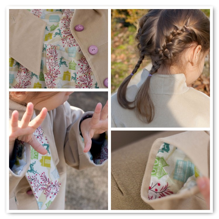 i was also able to finish up a project i’m really excited about. it’s the kestrel coat, by clever charlotte. have you heard of clever charlotte? they’re a relatively new independent kids’ pattern company, and recently released their second line of patterns for fall/winter. i first heard about them when katy of no big dill reviewed a couple of their spring/summer patterns back in june, and thought they were very interesting and beautiful and different from anything else that i’d seen.