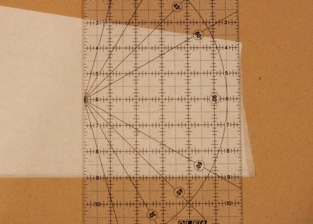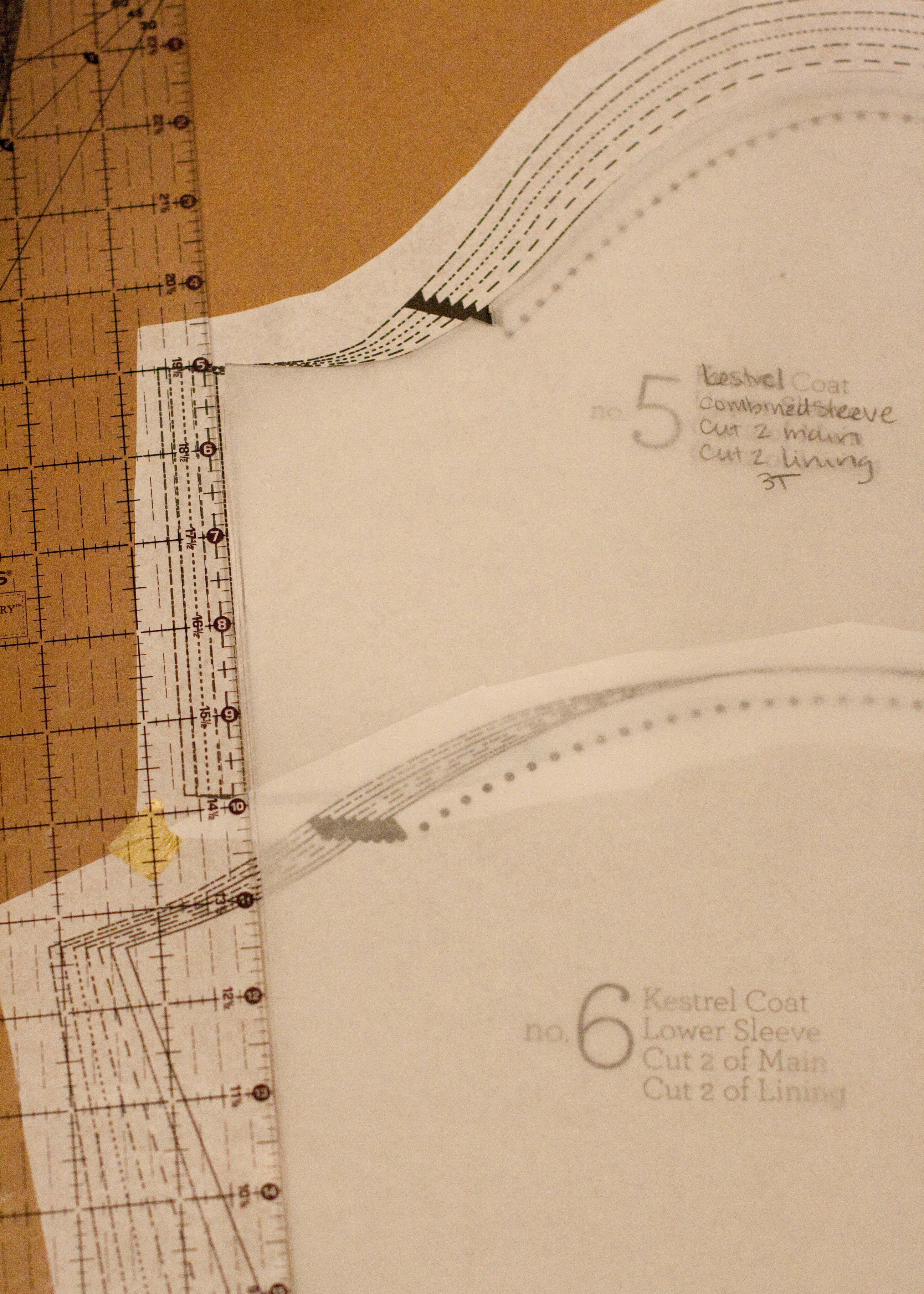 put a piece of tracing paper on top. using a ruler, connect the outer edges of the upper sleeve with the lower edges of the bottom sleeve. trace the rest of the pattern, including notches.