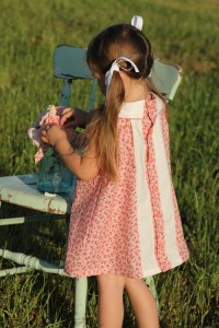 Isn’t Vintage May such a lovely idea for a sewing series? I’m so excited to be included! I do love some vintage goodness – furniture, dishes, housewares, sewing notions, clothing – I love to get lost in the stories of old items, imagining how these “vintage” items might have played a role in someone else’s life. History makes everything so much more interesting and fun! Children’s clothing from years past, in particular, conjures up images of innocence, attention to detail, simple embellishments, carefree play…it’s different in so many ways from today’s clothes. It was hard for me to choose a direction for a vintage-inspired outfit – so many fun options to try!!