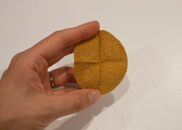 Remove the other side of the paper backing, and place appliqué where you’d like it. Iron it to fuse to the bib, then machine stitch close to the edge to secure, using whatever stitch you’d like (straight, zigzag, blanket, etc.). The web prevents it from fraying, but if you use a straight stitch it will get a little fuzzy around the edge after a few trips through the wash. I like that look.