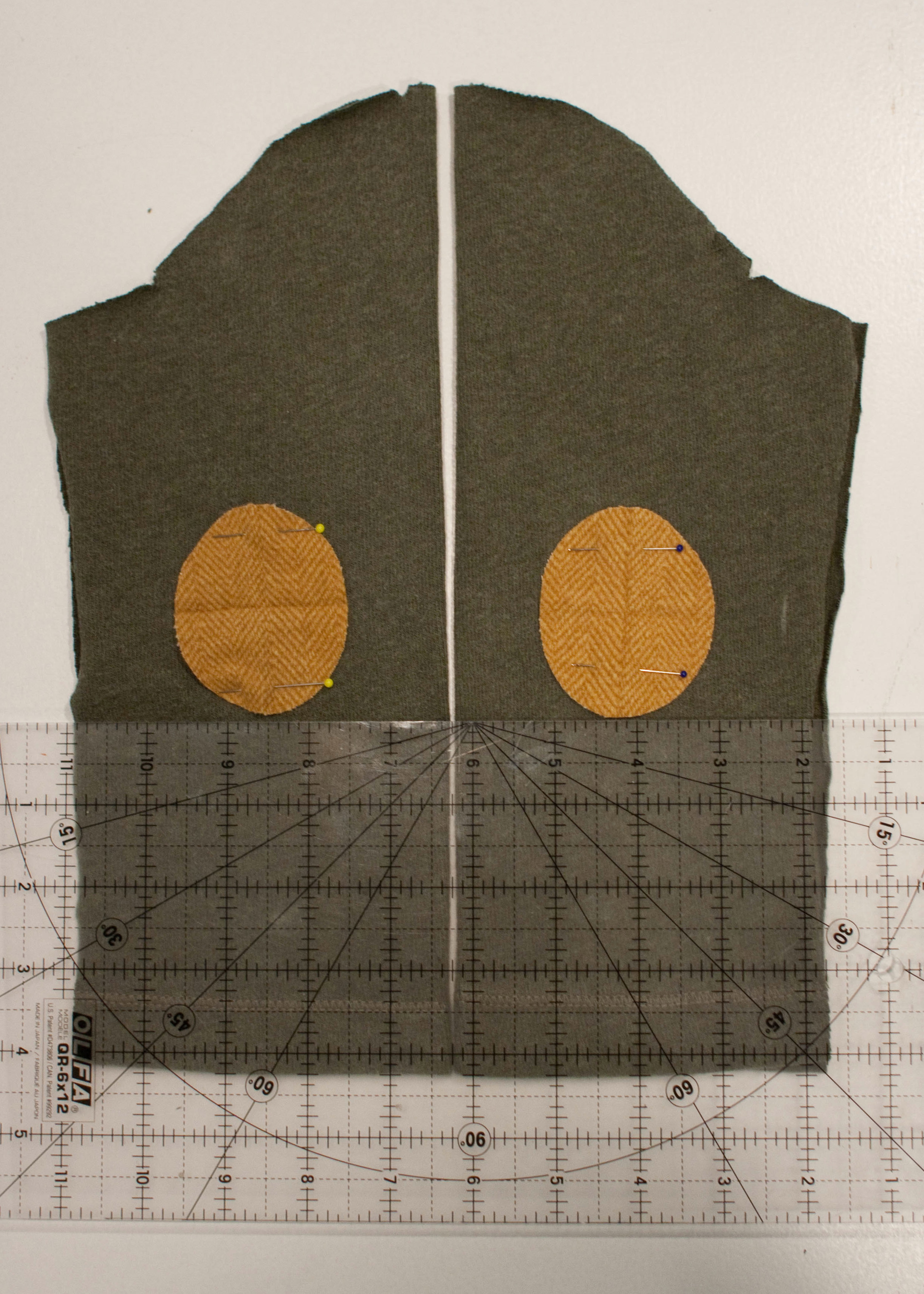 Cut out bib template, trace shape onto main fabric on the fold (I traced mine onto cardboard since I use it so often). Cut out the bib front.
