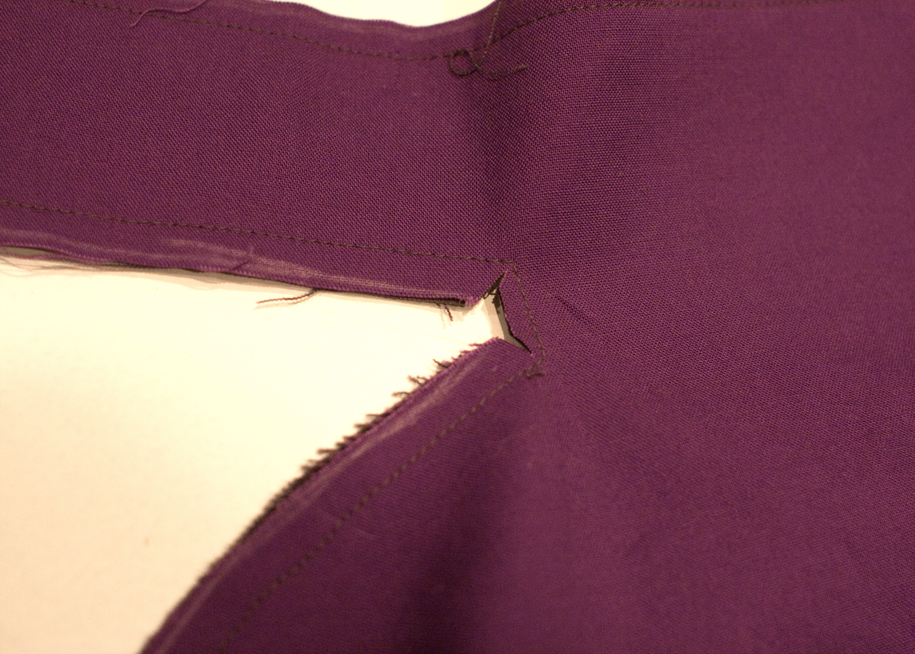 clip outside corners, and clip into the inside corners of the neckband as shown below.