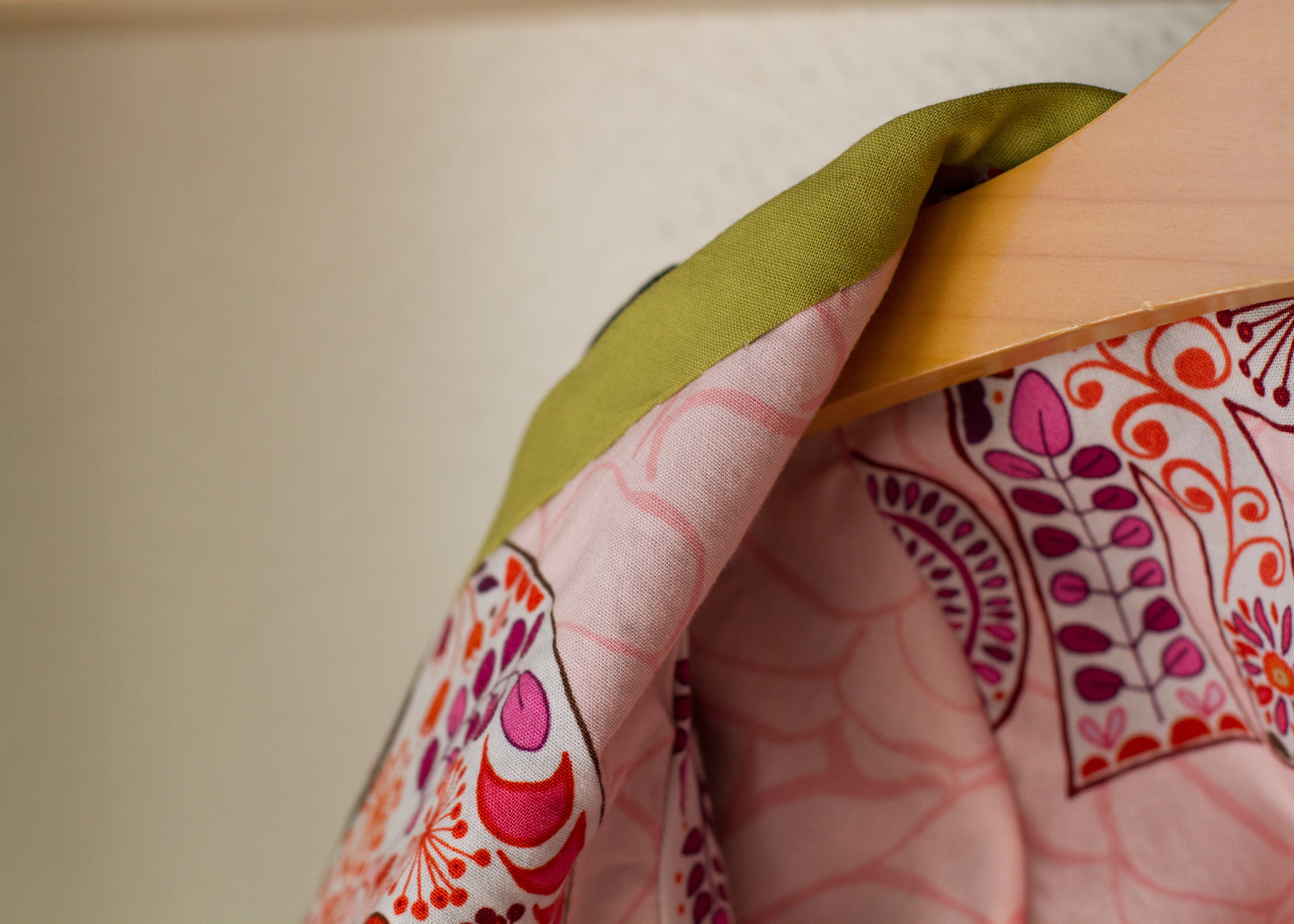 this was such a fun pattern to pick fabrics for! i went sort of “modern granny floral mashup” with it, mixing a fat quarter from heather ross’ briar rose (i got it at Bolt, you can get it here) with some pink kona solid, a vintage sheet from my stash, and some awesome purple floral bias tape that Jess gave me. it was a project for Em and only for her, so i just went with what i thought would make her happy.