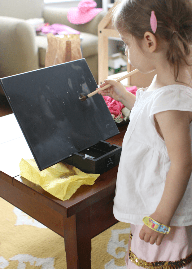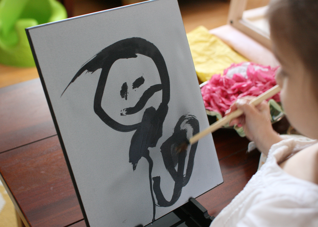 once she finishes each drawing, she plays “black out” and just paints the whole thing with water, then moves on to something else while it dries…then comes back and paints it out again.