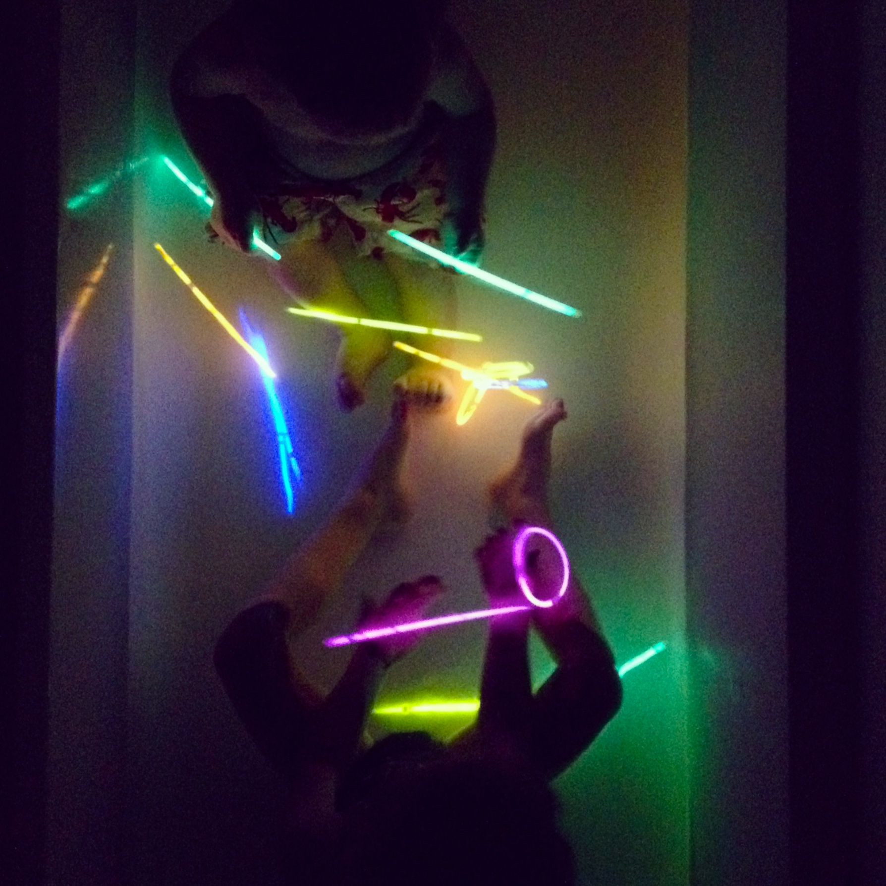 have you seen this on pinterest? it’s been all over lately. you crack open some leftover halloween glow sticks, toss them in the bath, and the kids go nuts. this was the first time i tried it, and both kids LOVED it. i let them both wear their swimsuits in there (i remember it was fun when my mom let us do that), and they stayed in longer than they would have swam! we don’t have a window in our bathroom, so it worked even in the daytime.