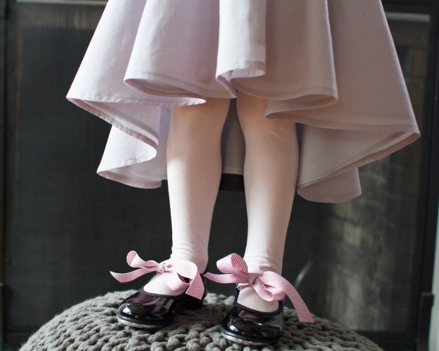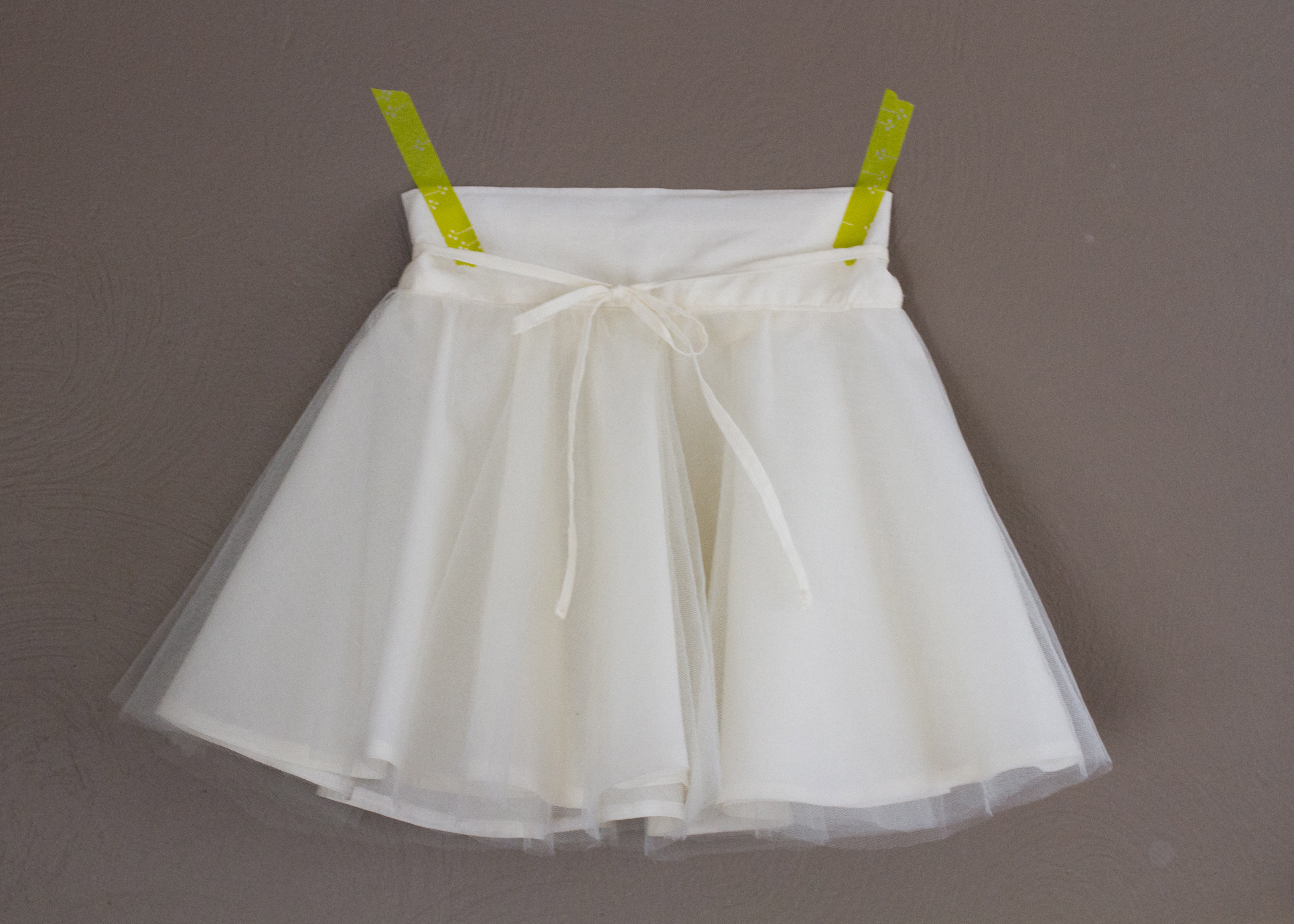 i did a bit more sleuthing around on the skirt and i believe it’s from shabby apple, although theirs only looks to be in white. regardless, i had to make it for my ballerina girl. it’s a batiste circle skirt on the bottom, then three layers of cream tulle, also circle skirts. gotta admit, i felt pretty smart when i realized i could cut them that way and avoid hemming the tulle!