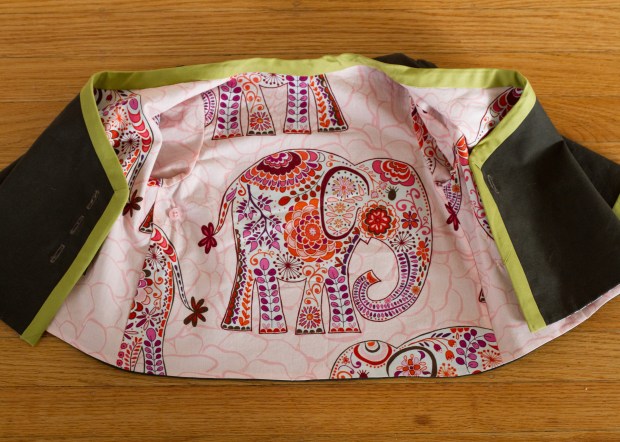 the lining is marrakech elephants by valori wells. i’m sure Em wishes it was on the outside. hehe.