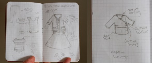 one thing that i’ve tried to be conscious of throughout this competition is remaining true to my aesthetic. it’s surprisingly easy to start feeling swayed by what other people are doing in a situation like this, especially because i tend to design things that are much more understated, normally. so i have worked hard to keep to my own look while still pushing myself to add “wow.” i think this week is my best example of that balance. the jacket has clean lines and is very wearable, the pink shirt and ballet skirt are more elevated from the everyday. most of the time i’m sewing what i hope she’ll want to wear anyway, and using pink, elephants, and ballet stuff are always a good bet!
